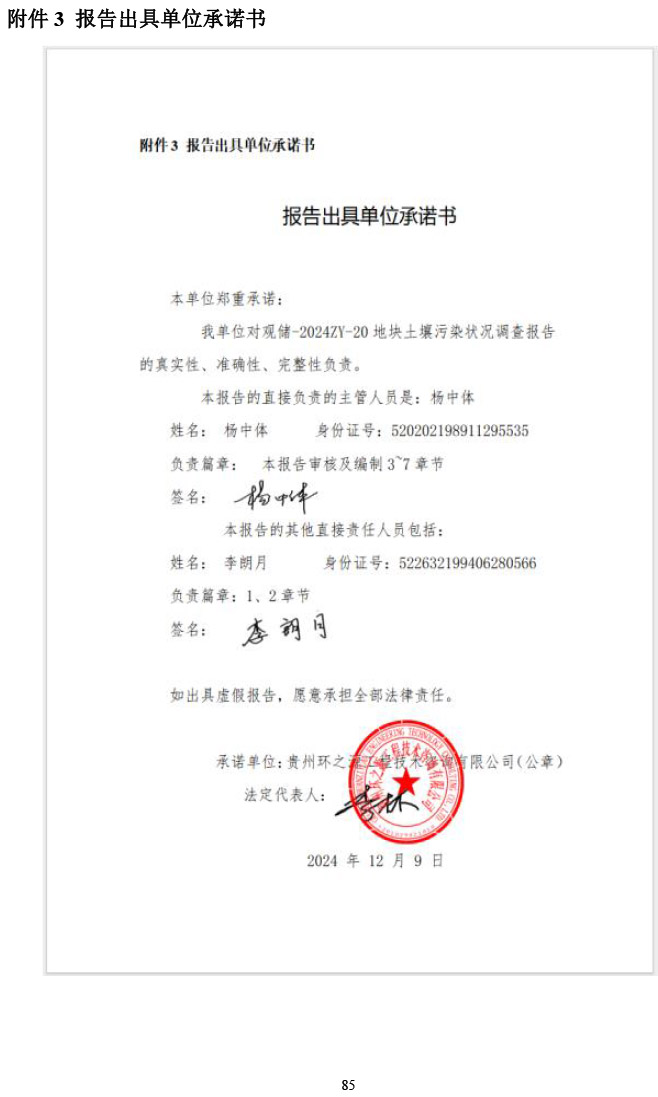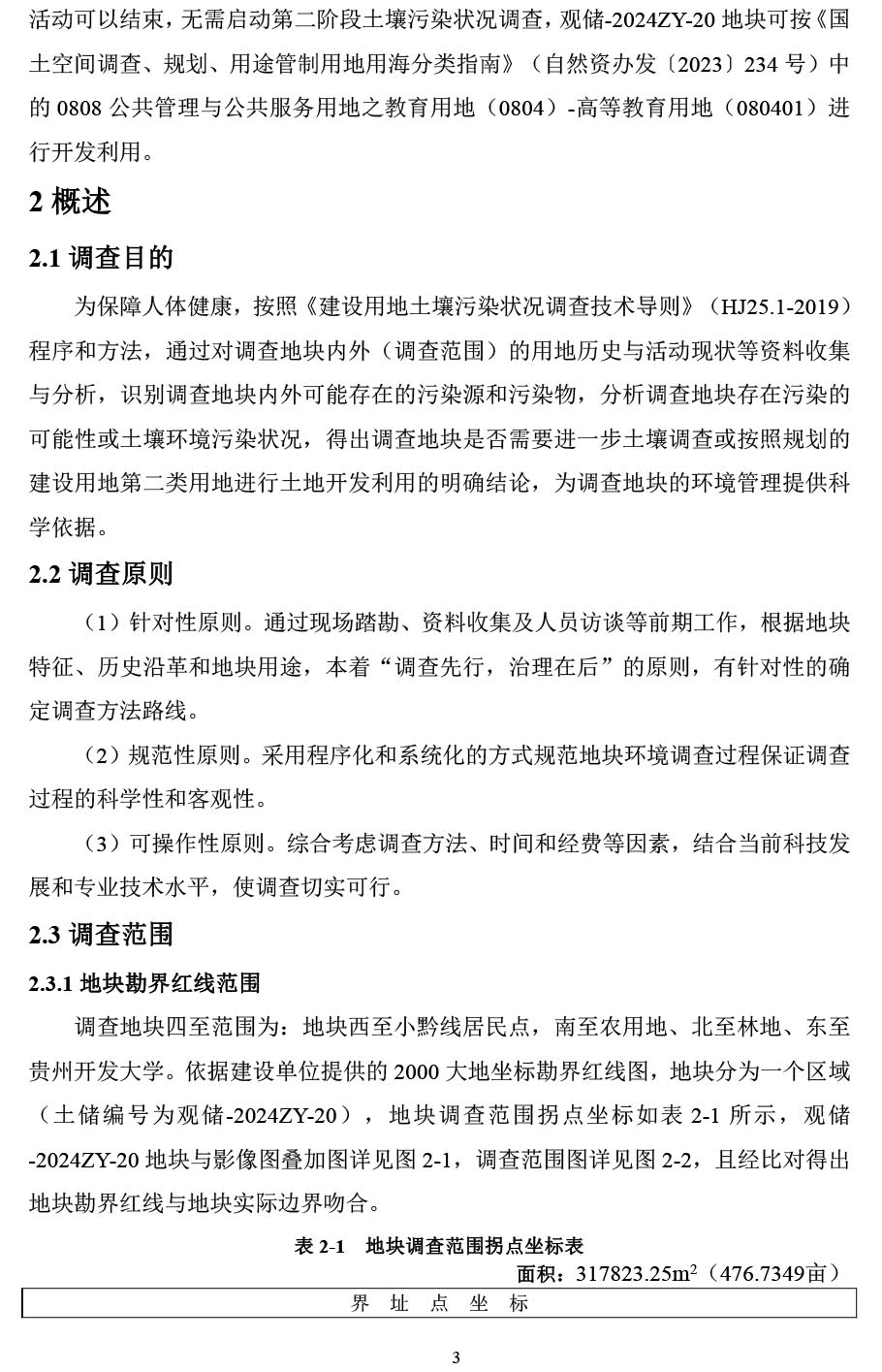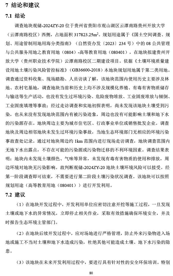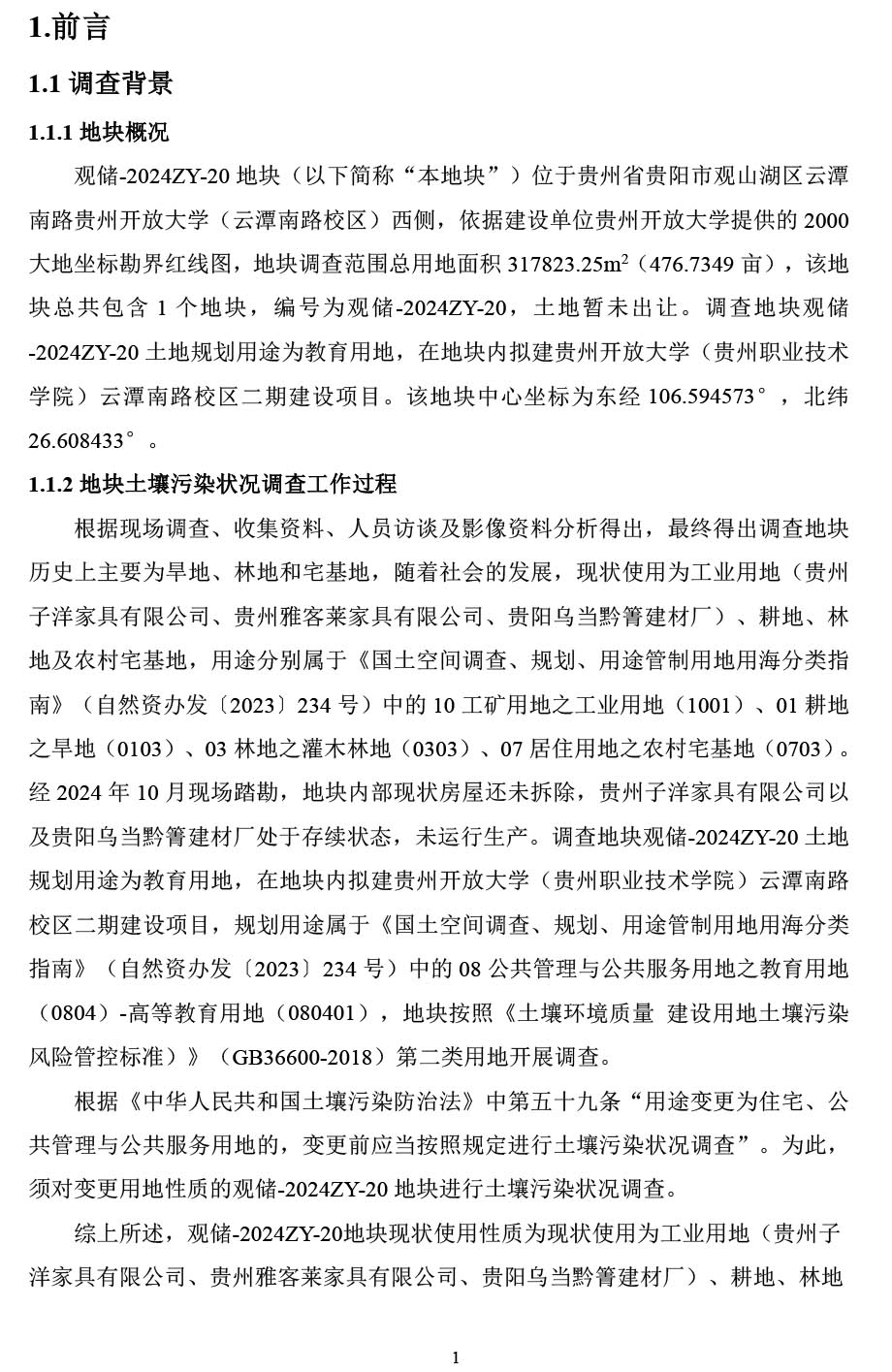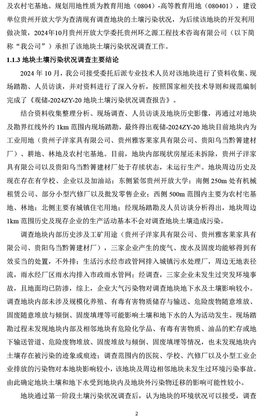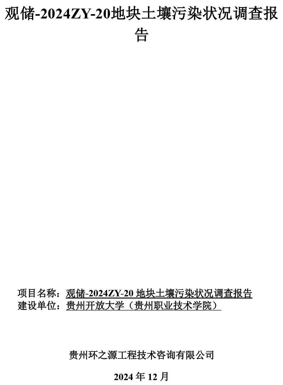 為實現項目用地安全、環保可持續的發展,觀儲-2024ZY-20地塊土壤污染狀況調查工作,委托貴州環之源工程技術咨詢有限公司編制了《觀儲-2024ZY-20地塊土壤污染狀況調查報告》。