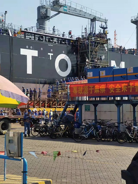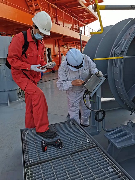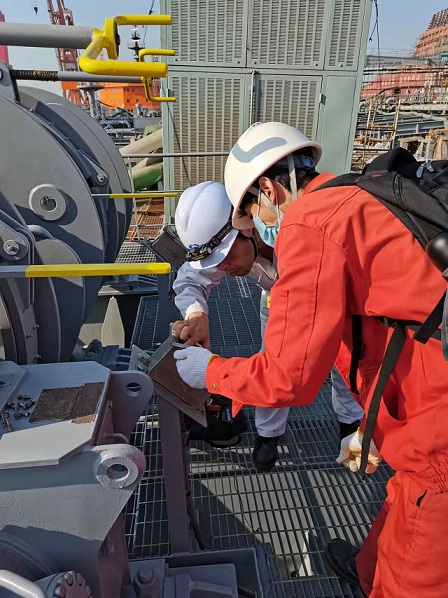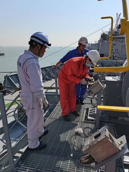 質保部張建國部長,生產部王博副經理在廣船國際公司進行售后服務。