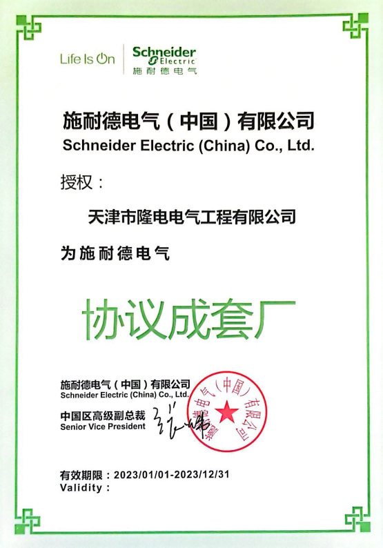 隆電電氣獲得施耐德電氣授權(quán)