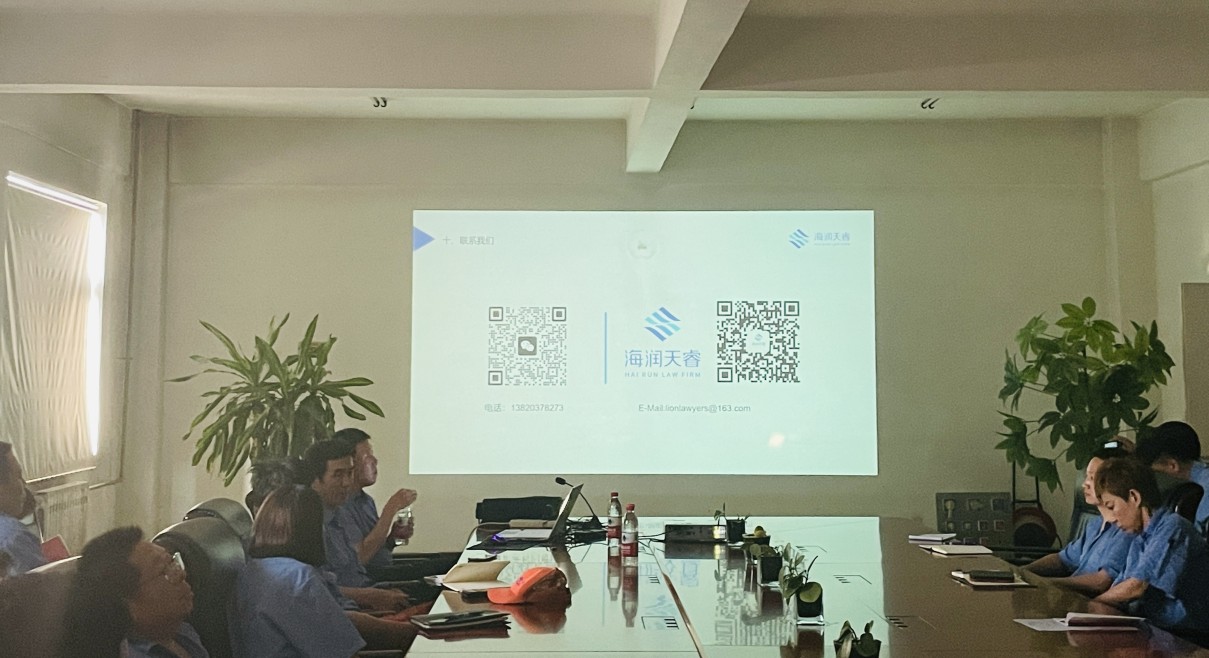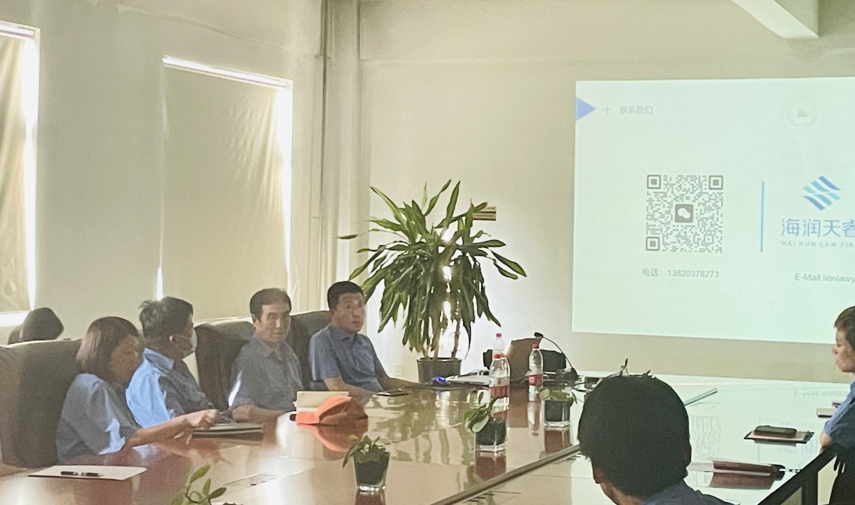 根據(jù)公司年度培訓計劃安排,2023年6月20日,我司邀請海潤天睿律師事務所高級合伙人師真昊律師對我司管理部、技術部、采購部、生產部相關人員進行了法律知識培訓。培訓內容包括:勞動合同、敬業(yè)要求、知識產權保護,職務犯罪等方面內容。通過本次法律知識培訓,讓我司員工明白學法的目的在于懂法,守法,不違法,不犯法;知法,用法,用法律的武器保護自己不受侵害。