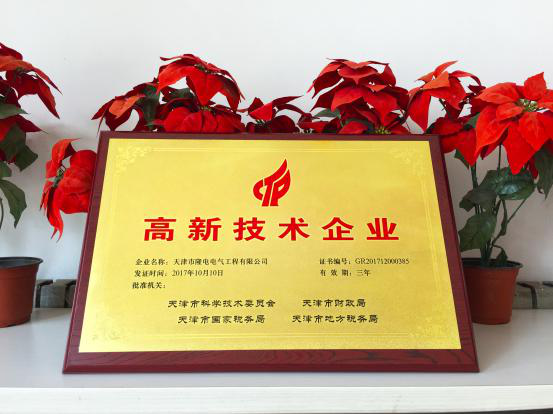 根據(jù)《高新技術(shù)企業(yè)認定管理辦法》和《高新技術(shù)企業(yè)認定管理工作指引》的相關(guān)規(guī)定,隆電電氣被認定為國家級高新技術(shù)企業(yè),并于近日收到了天津市科學(xué)技術(shù)委員會、天津市財政局、天津市國家稅務(wù)局、天津市地方稅務(wù)局聯(lián)合頒發(fā)的《高新技術(shù)企業(yè)證書》牌匾(編號GR201712000385)。