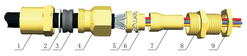 Assembly schematic for DT series explosion-proof cable gland (Ⅰ)